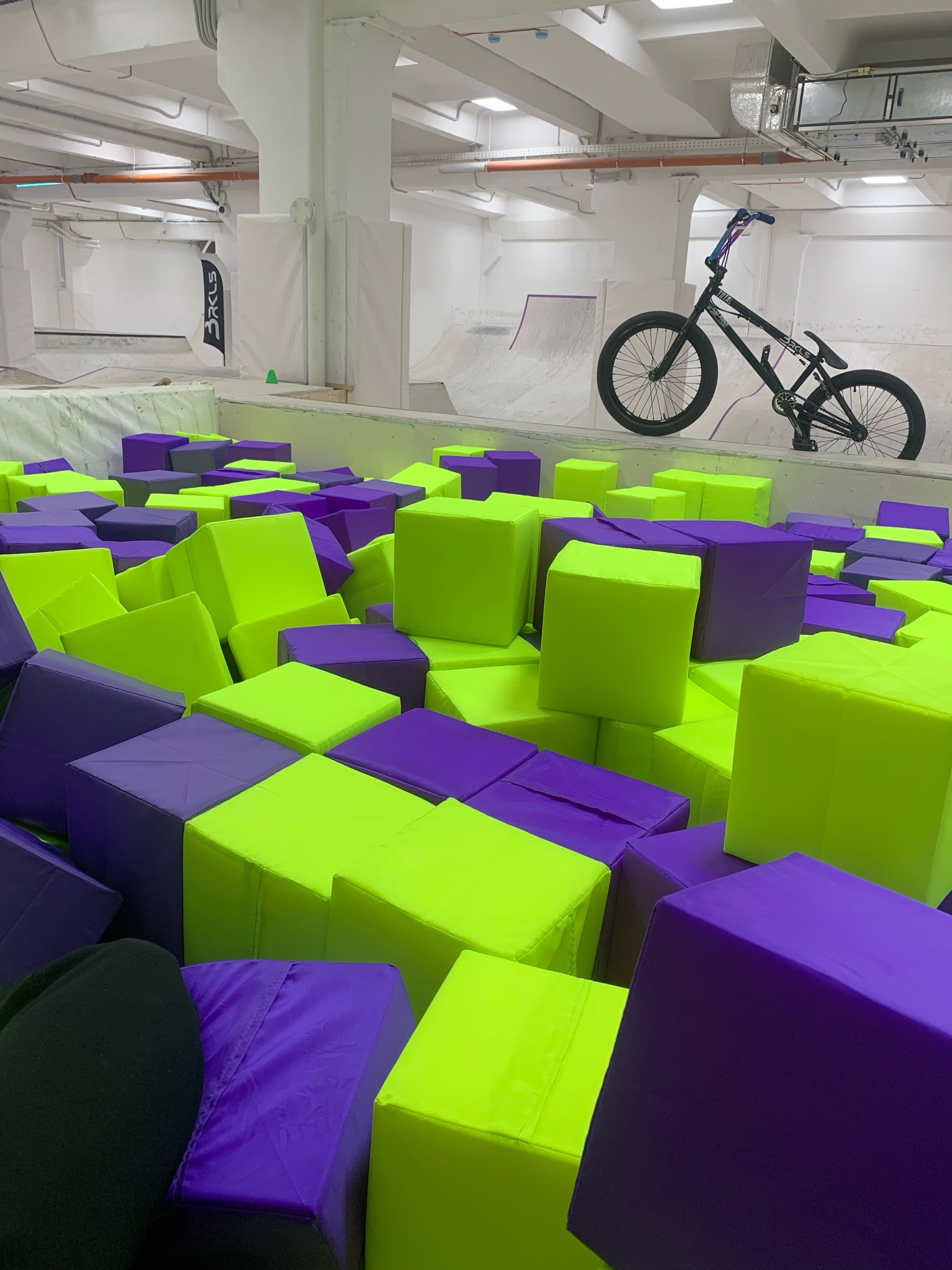 «На этот вопрос я могу писать бесконечно. Начну с того, что наш парк один из немногих полностью легальных в России. Помещение переоборудовано и оформлено со всеми разрешениями под нашу деятельность. Пройдена пожарка. Вся проводка из негорючих кабелей, специально созданных для детских учреждений. Освещение разработано так, что в парке очень светло и почти нет теней. Установлено аварийное освещение. Смонтирована современная приточно-вытяжная вентиляционная система, стоит крутое настраиваемое отопление. Из кранов течёт чистая питьевая вода, есть уютный туалет и гардероб со шкафчиками на браслетах, кафе с собственной кухней. Каждый уголок парка под видеонаблюдением, которое транслируется в зону ожидания родителей. Кулер с водой и комфортная зона отдыха для райдеров. Фигуры сделаны по уникальной технологии с повышенной жесткостью каркасов — при всех плюсах деревянного парка накат как в бетонном. Специальная пропитка делает парк прочным и не скользким. Поролоновая яма, где каждый кубик был упакован в специальный чехол — из-за этого кубики не пропитываются потом, не крошатся и всегда чистые. Большое количество собственного транспорта: все размеры великов, самокаты под любой рост и стиль катания, скейтборды разных размеров.