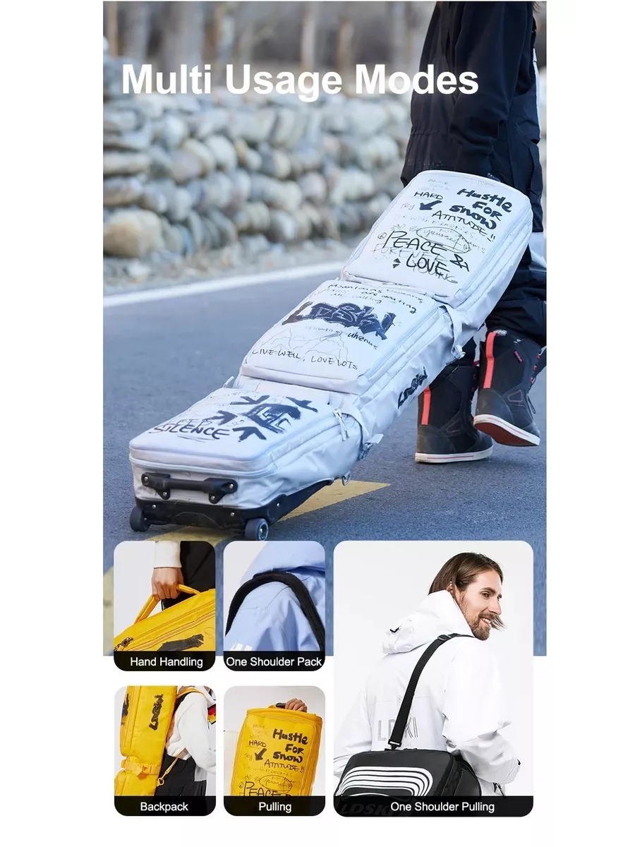 Чехол можно переносить с помощью лямок, как рюкзак, которые спрятаны в дополнительном кармане с обратной стороны чехла. Можно нести при помощи четырех ручек расположенных с боку и на лицевой стороне чехла или буксировочной ручки и колес. Мягкий ремень для ношения через плече, очень удобный, даже для длительного ношения.