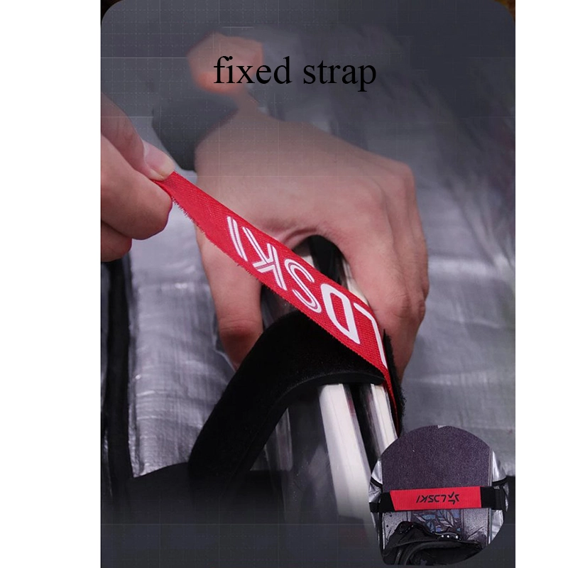— Чехол снабжен специальной системой крепежа лыж или сноуборда. Она включает: специальный набор застежек и стяжек на липучках, для надежного крепления лыж или сноуборда.