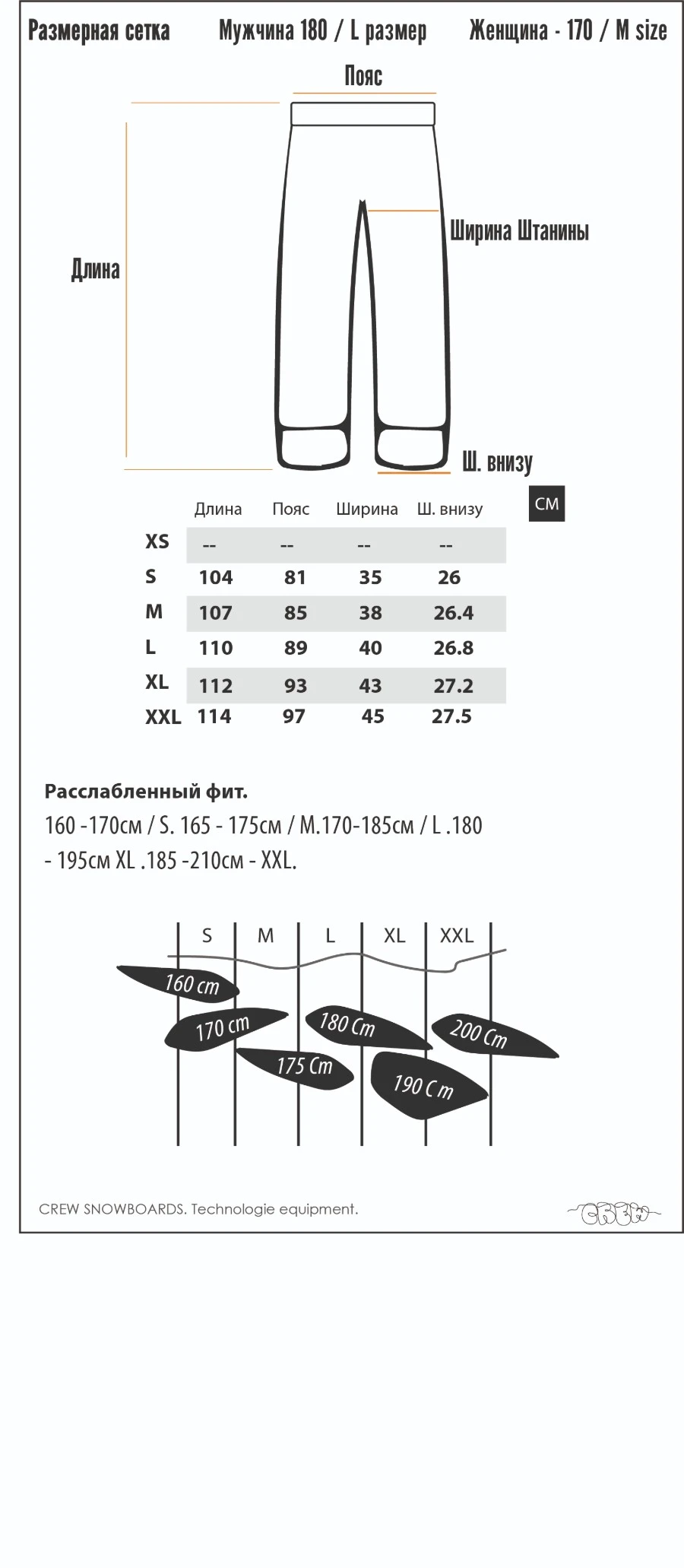 Зимние штаны Snow Storm – флагман линейки одежды CREW SNOW. Высококачественные, высокотехнологичные штаны для сноубординга и аутдор активности. Проклеенные швы, карманы на водонепроницаемых молниях Ykk, молния с резинкой внизу для трансформирования штанины в режим сноуботинок.