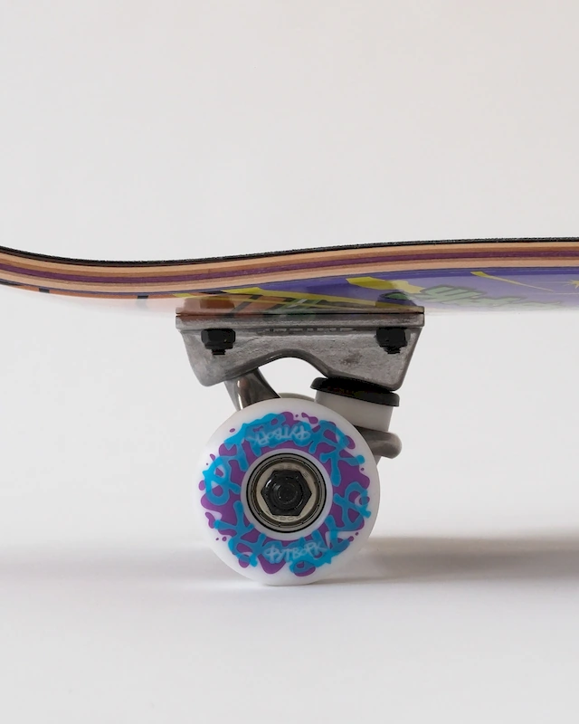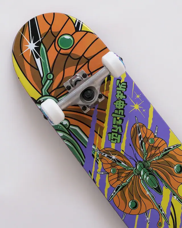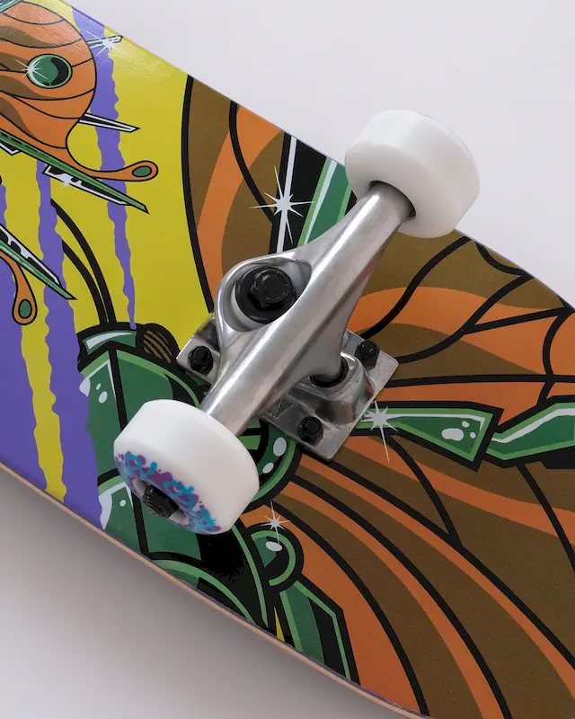 Специальный клей. В готовых скейтбордах используется особый клей на водной основе. С ним дека более гибкая, и ощущения от щелчка будут отличаться от, например, жёсткой деки Progress. Это сделано для того, чтобы готовый скейтборд был прежде всего выбором новичка. Пока райдер учится, он постоянно приземляет трюки и олли не по болтам. Приземлив одну ногу не туда, можно легко сломать деку. Благодаря большей гибкости дека прощает такие ошибки и не ломается — просто прогибается и возвращается назад. Это важное свойство деки для новичка.