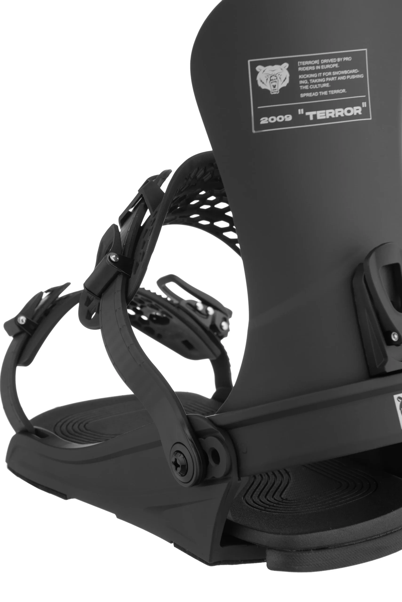 Совершенно новая модель креплений от TERRO открывает иной уровень в развитии бренда: современный дизайн хайбэка — строгий, четкий, надежный, он отражает философию бренда и командный стиль. Эти крепления отлично подойдут как для универсалов катания в стиле All Mountain, так и для парковых бойцов.