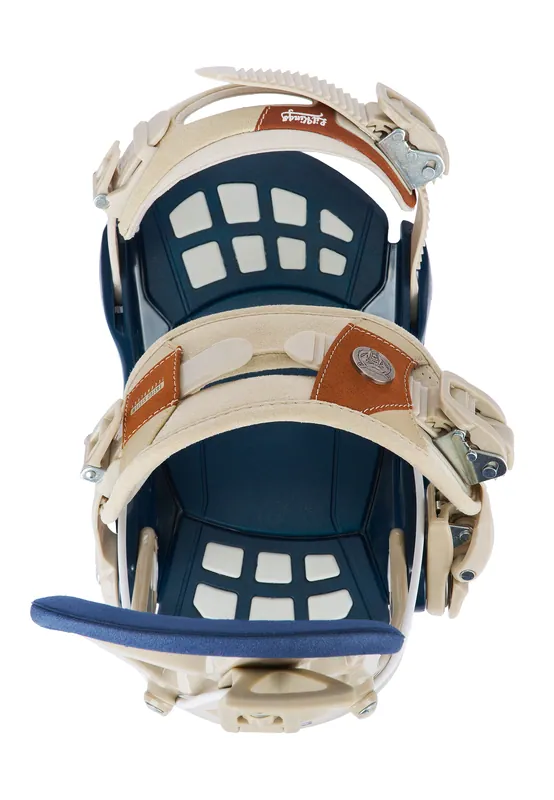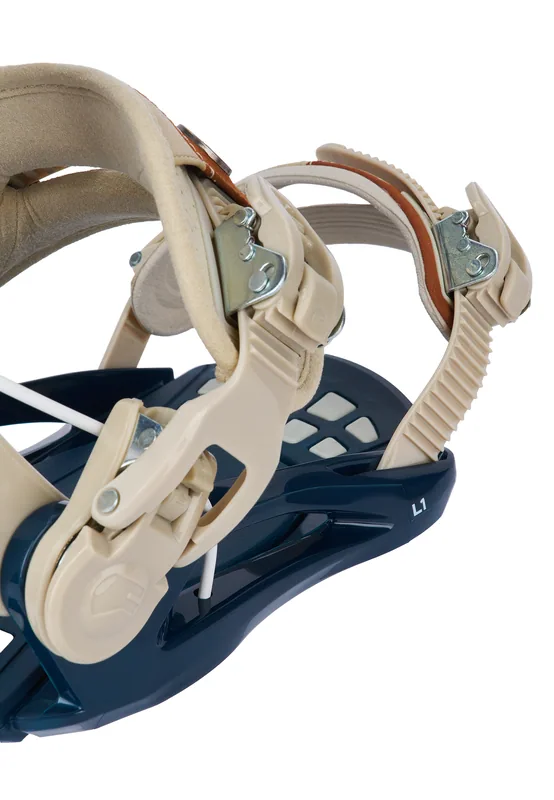 Прочные стрепы для лучшей управляемости, регулировка стрепов и хайбека для детальной подгонки под размер ботинка, мягкие вставки гасящие вибрацию при езде и улучшающие сцепление с ботинком.
