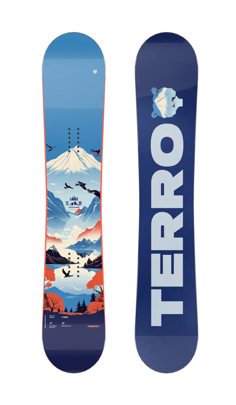 хозяйке на любом склоне. Для лучшего контроля доски инженеры Terro использовали сердечник из тщательно отобранного тополя, усиленный стекловолокном Tri-Ax и карбоновыми стрингерами, а для катания на обледеневших участках склона и в глубоком снегу — прогиб CamRock, конструктивные особенности которого понравятся прогрессирующим райдерам.