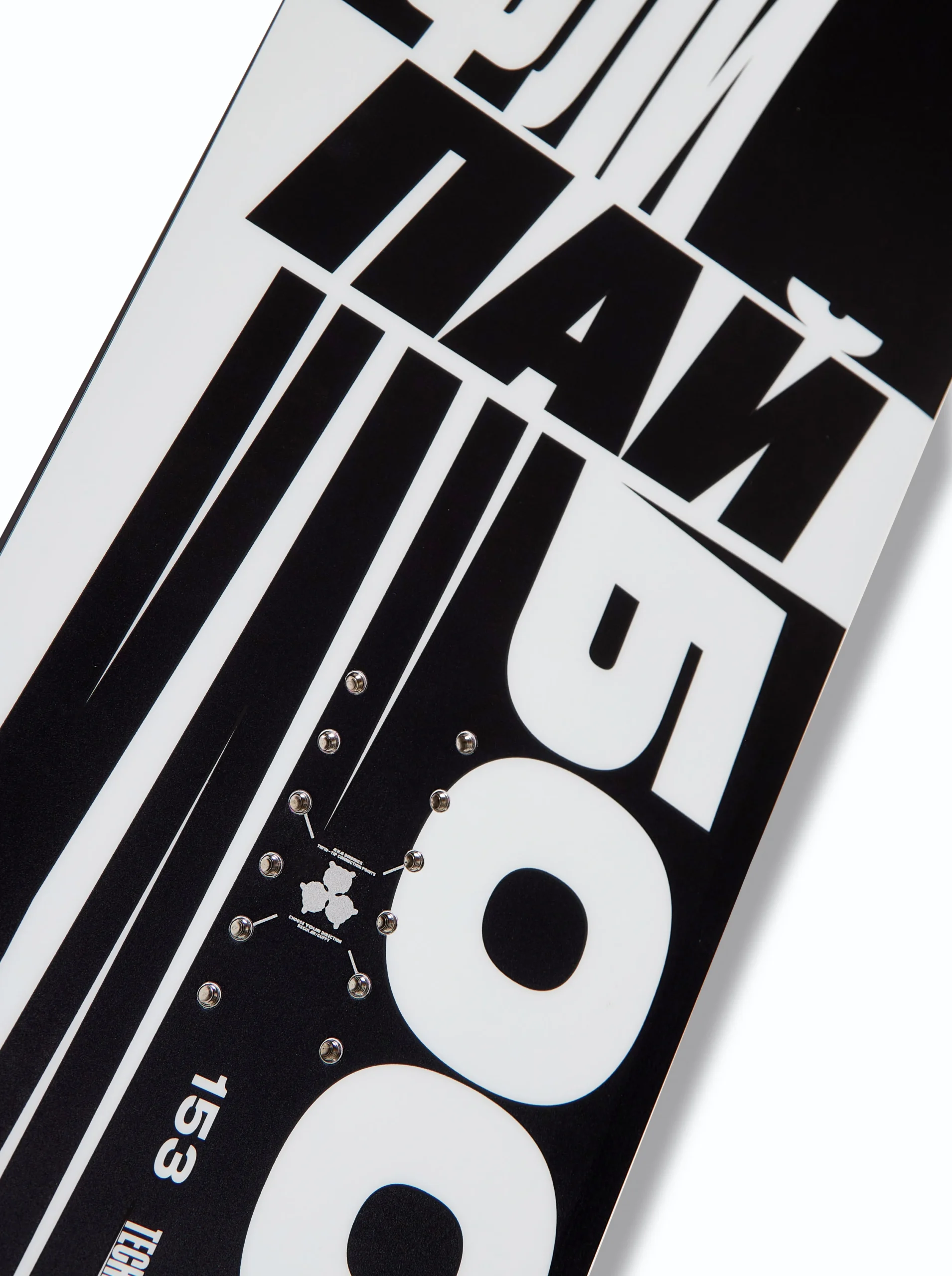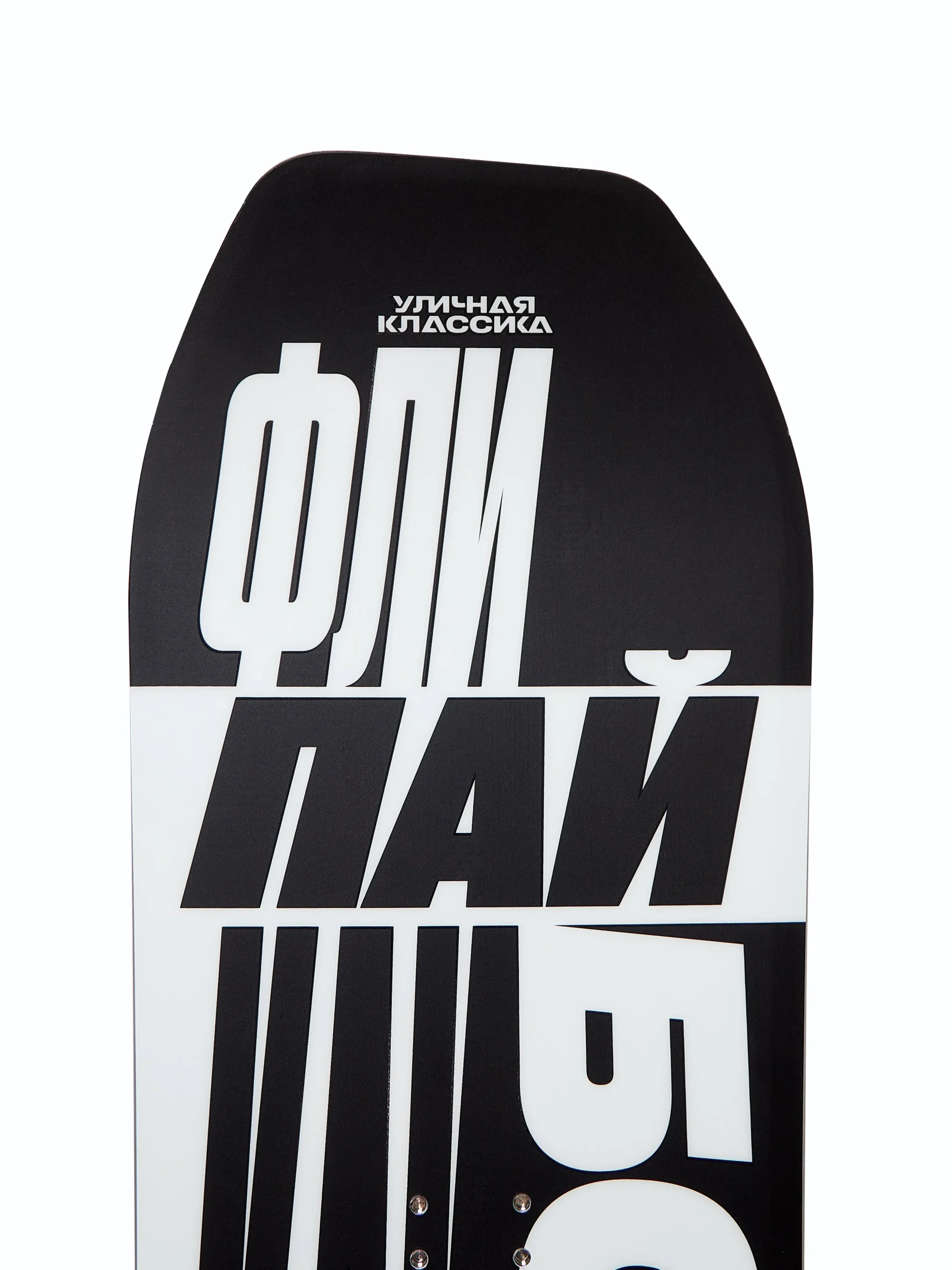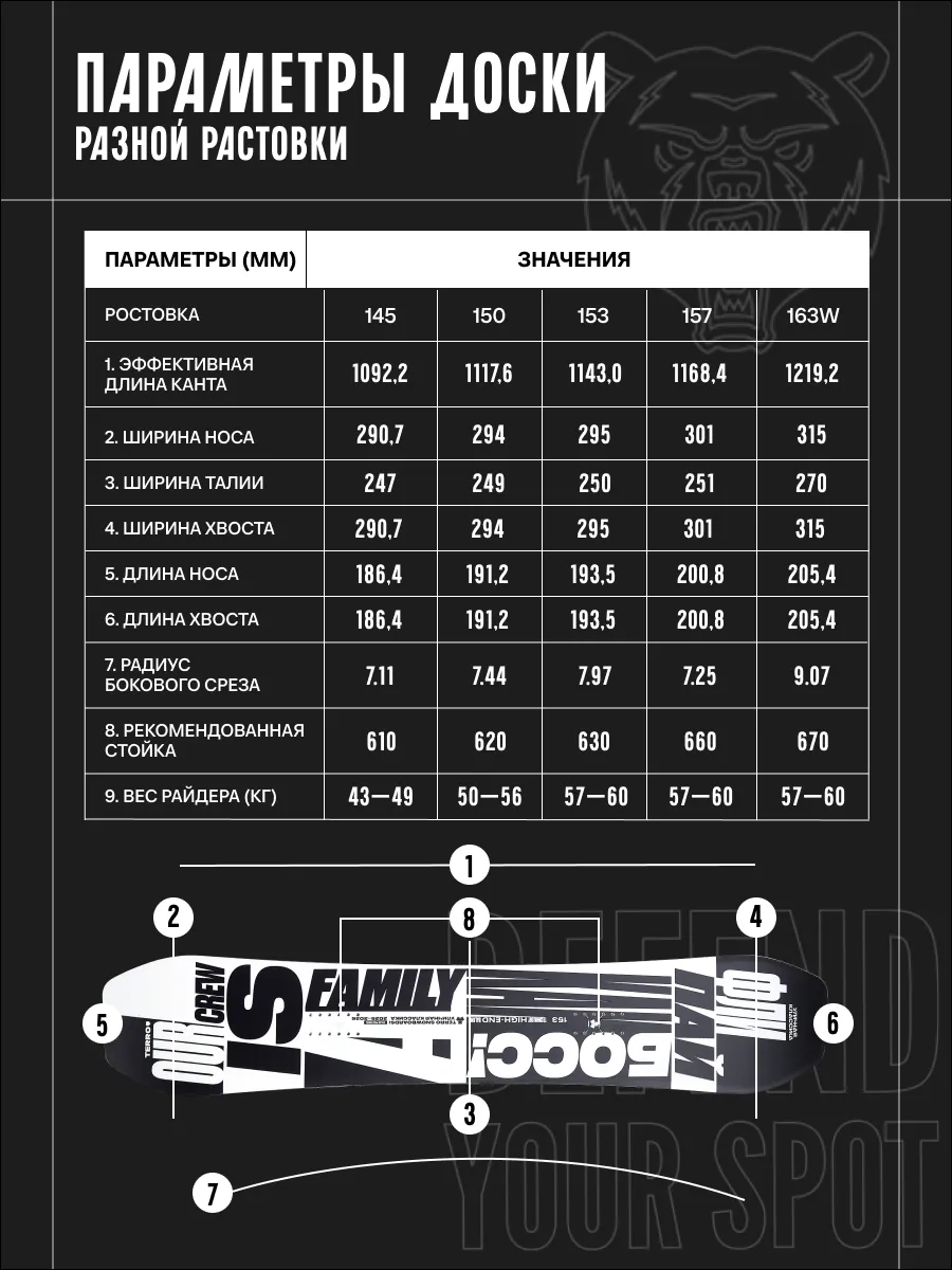 А теперь немного о технологиях: основу доски составляет сердечник из Тополя с буковыми вставками и карбоновыми стрингерами на носу и тейле; прогиб Camber, увеличивающий отзывчивость и контроль доски на высокой скорости, прочный топшит из пластика PBT, а также спечённый скользяк из высокомолекулярного полиэтилена UHMW PE 7500