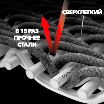 Прочный, как проволока, фал Dyneema не растягивается и превосходит сталь и другие синтетические материалы по устойчивости к нагрузкам на растяжение и изгиб. Dyneema устойчив к соленой воде, обладает высокой устойчивостью к ультрафиолету и истиранию. Используется брендом Ronix.